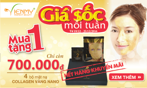 Cuối năm, thời tiết thay đổi khiến da trở nên khô sần và lão hóa, thiếu chất dưỡng ẩm trầm trọng. Hiểu được vấn đề đó, từ ngày 19/12 –>25/12/2016, Viên Mỹ mở ngay chương trình khuyến mãi “giá sốc”: khi mua 1 hộp mặt nạ Collagen Vàng Nano VlancVere, tặng ngay 1 hộp sản phẩm cùng loại. Đây là cơ hội duy nhất trong năm cho Spa – Thẩm mỹ viện tưng bừng mua sắm và tạo ra các dịch vụ chăm sóc da mới lạ, đầy hiệu quả.